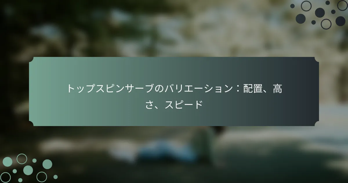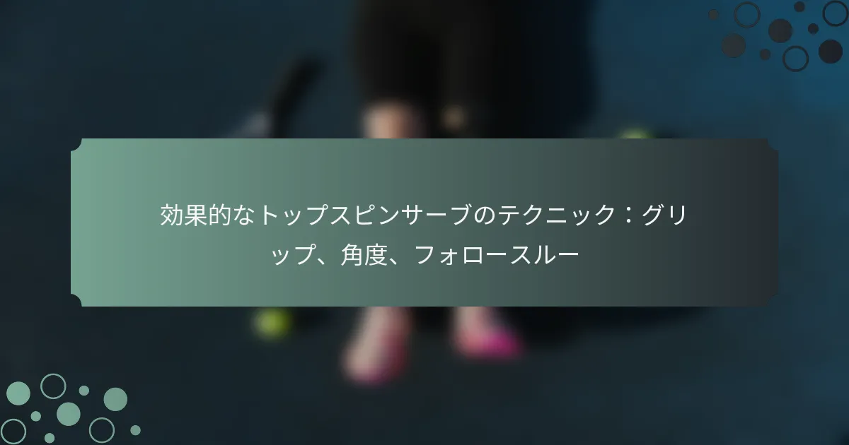 効果的なトップスピンサーブは、グリップ、角度、フォロースルーのテクニックをマスターすることに依存しています。これらの要素が組み合わさることで、相手のリズムや配置を乱す強力でコントロールされたサーブを生み出します。