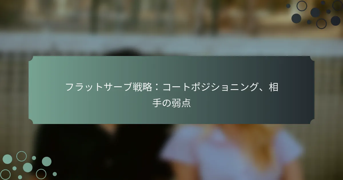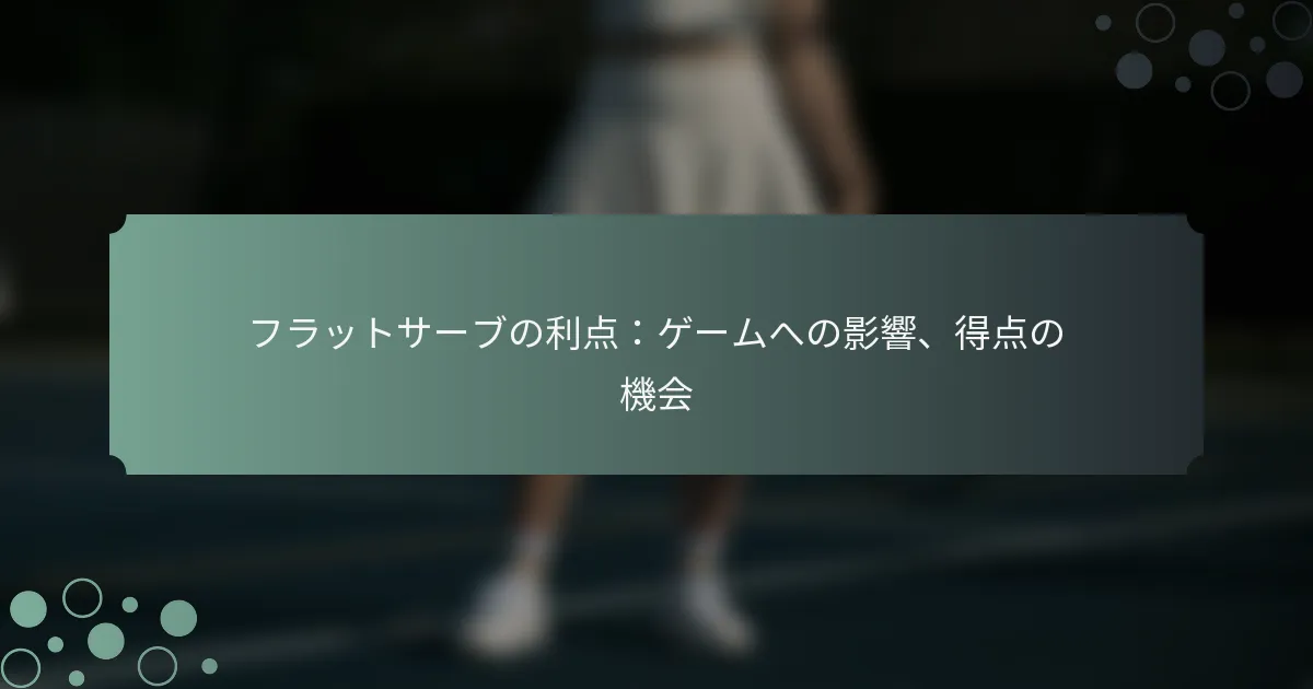 フラットサーブは、スピンが最小限で、相手に向かって速く、直接的な弾道を持つことが特徴です。この技術は、ボールの最高点でフルスイングで打つことに依存しており、スピードを最大化し、相手が反応する時間を短縮します。目標は、ボールを挑戦的な位置に置くことであり、サービスボックスのコーナーを狙うことが多いです。