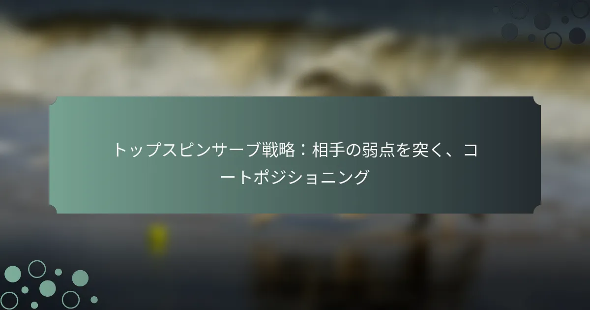 選手はまた、相手の強みと弱みを考慮する必要があります。相手が高くバウンドするボールに苦しむ場合、フラットサーブを混ぜることでリズムを乱すことができます。逆に、相手がフラットサーブを返すのが得意な場合、選手は戦略を調整する必要があるかもしれません。