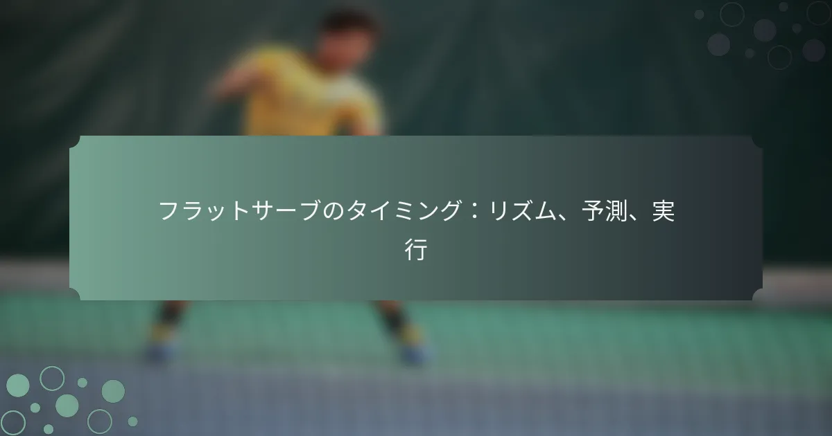 フラットサーブのための一貫したリズムを発展させるには、動きのタイミング、ボールの軌道の予測、技術の実行に焦点を当てます。適切なタイミングのサーブは、これらの要素を組み合わせて、精度と力を高める流れるような動きを生み出します。