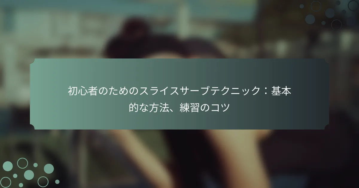 スライスサーブは、ボールを横方向に打つことでスピンを与え、曲がるようにする技術です。この技術は通常、特定のグリップ、しばしばコンチネンタルグリップを必要とし、より良いコントロールとスピンを可能にします。メカニクスには、低から高へのラケットの動きが含まれ、ボールが側面で打たれることで望ましいスライス効果が生まれます。
