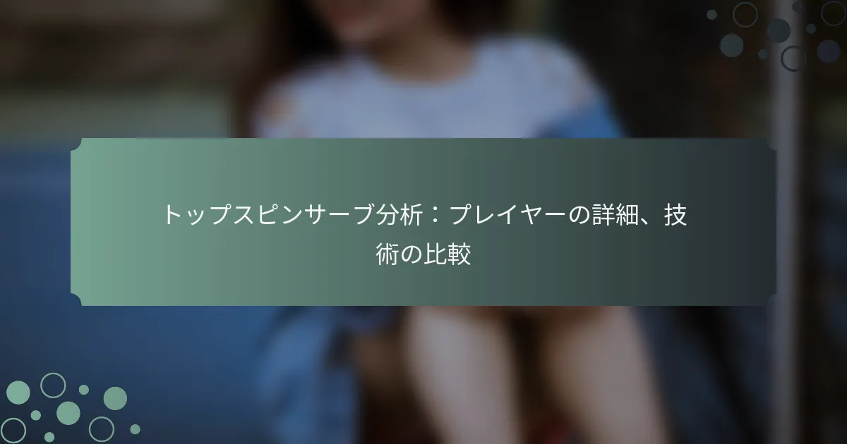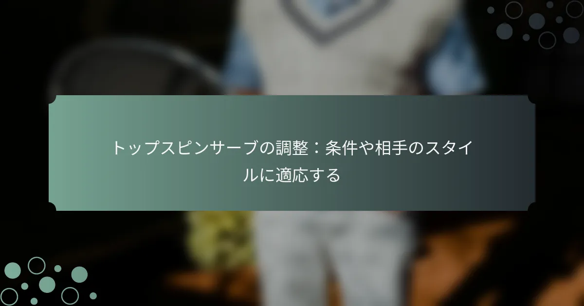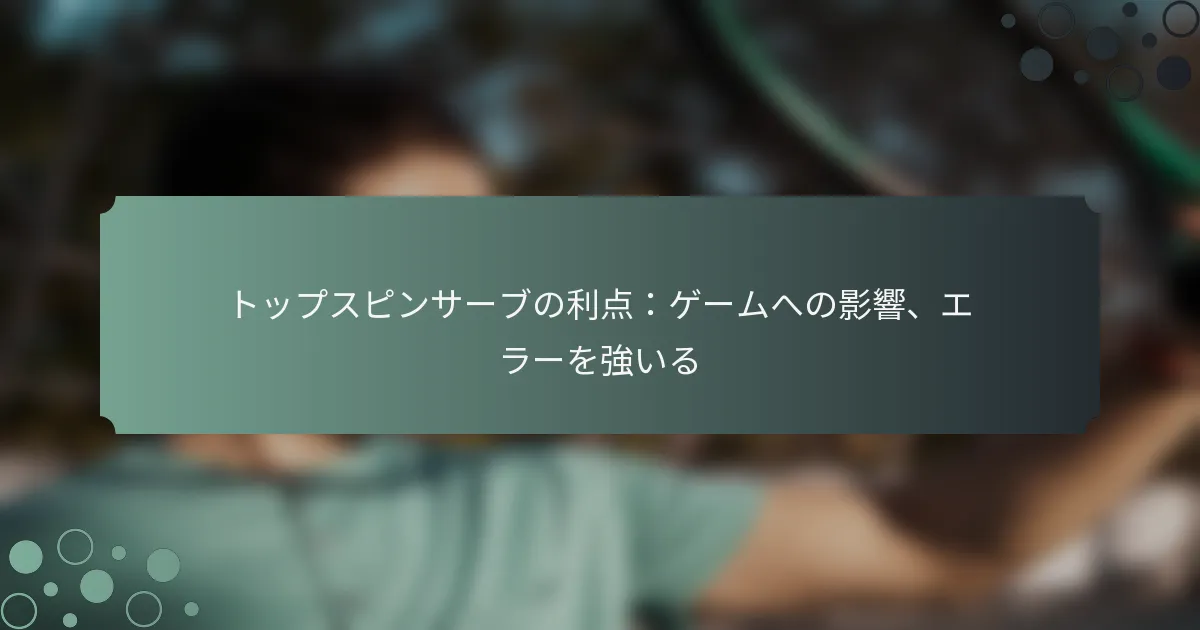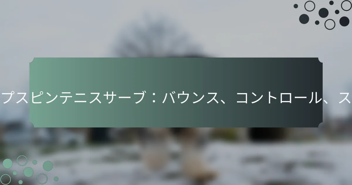 トップスピンサーブを改善するには、グリップ技術、体のポジショニング、フォロースルーのメカニクスをマスターすることが必要です。継続的な練習と特定のドリルを取り入れて、スキルを向上させ、一般的なミスを避けることに焦点を当てましょう。