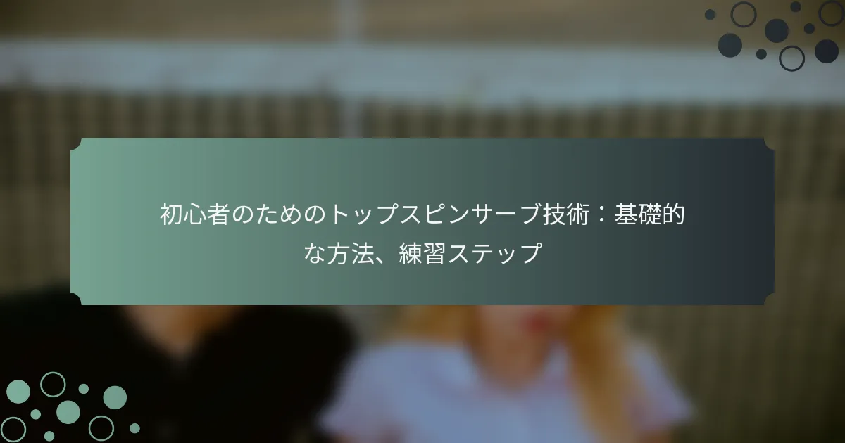 トップスピンサーブをマスターするには、個別のドリル、パートナーとの練習、正確なフットワークを組み合わせた専用の練習方法が必要です。練習中に特定のターゲットエリアに焦点を当てることで、プレーヤーは精度を高め、相手に効果的に対抗するためにサーブを適応させることができます。筋肉記憶を発展させるためには、一貫した反復が不可欠であり、これによりプレーヤーは技術を洗練させ、コートでの全体的なパフォーマンスを向上させることができます。