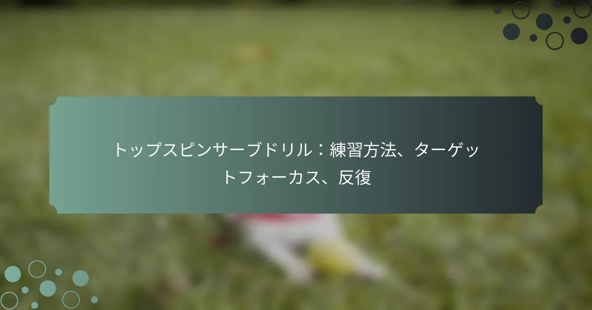 トップスピンサーブのターゲットフォーカスを改善するには、練習中にコートの特定のエリアに焦点を絞ることが重要です。ターゲットゾーンを特定し、相手の位置に基づいてサーブを調整することで、精度と一貫性を向上させることができます。