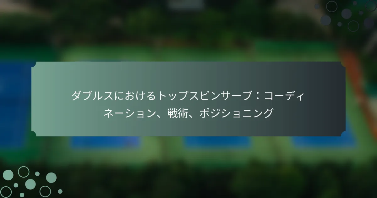 ダブルスにおけるトップスピンサーブを改善するには、適切な技術、パートナーとの効果的なコミュニケーション、戦略的なターゲティングの組み合わせが必要です。グリップ、体のポジショニング、リズムに焦点を当てることで、サーブの効果を高め、チームの成功に貢献できます。